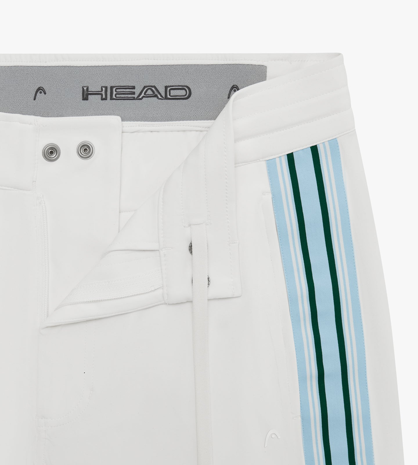 Crafted from a lightweight nylon and Lycra blend, these joggers provide breathable stretch and all-day comfort. The hidden snap closure and snap-and-zip fly maintain a streamlined look, while the inner drawcord and grip waistband keep your fit locked in. Finished with printed HEAD logos at the front and back, these joggers are ready to transition from warm-up to wind-down without missing a step.